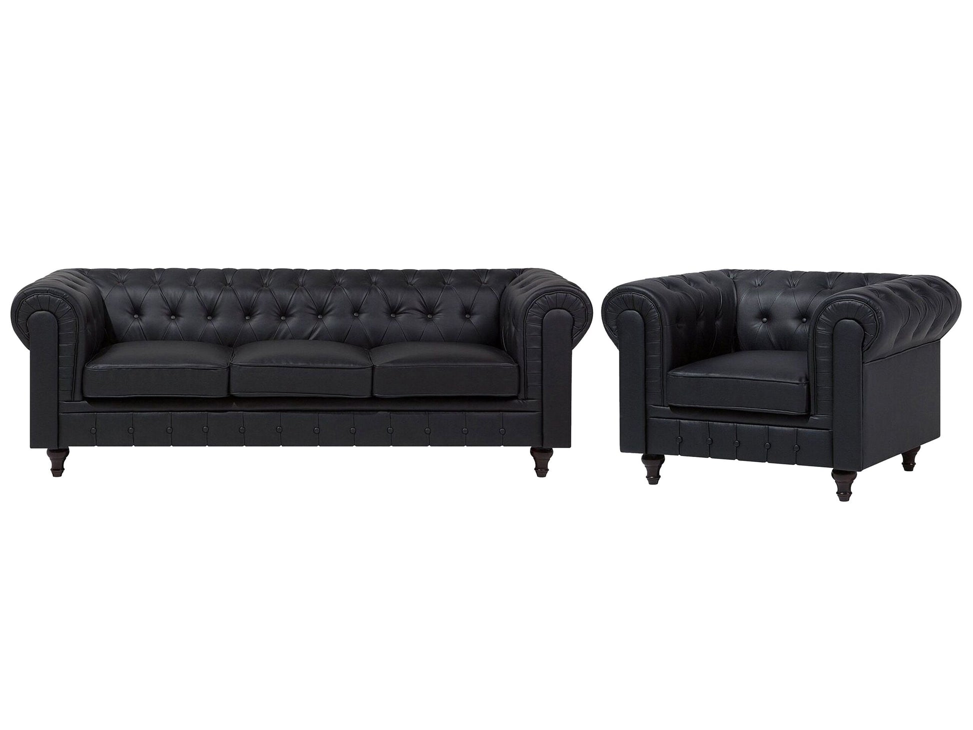 Sofa Set Kunstleder schwarz 4-Sitzer CHESTERFIELD gross