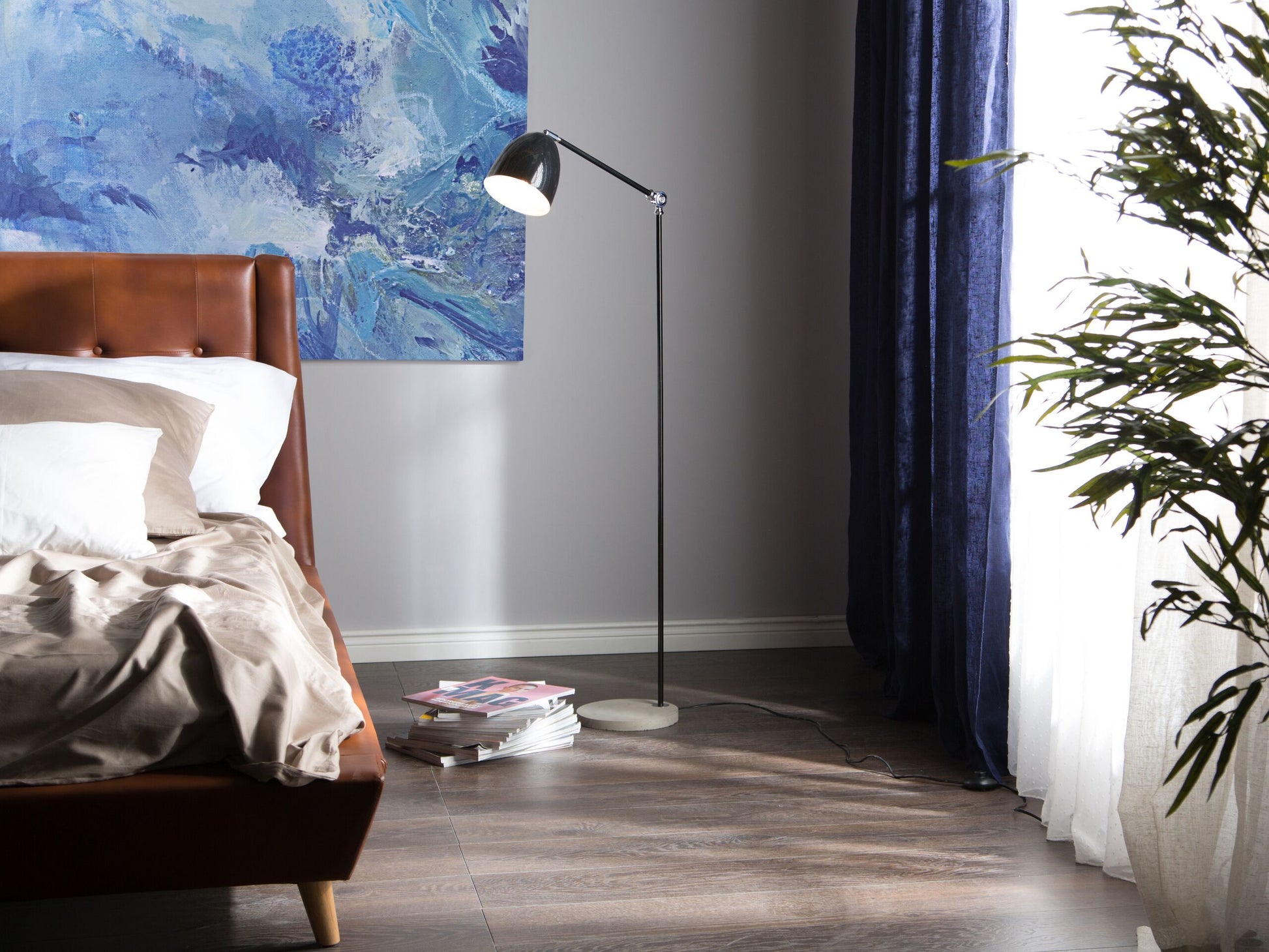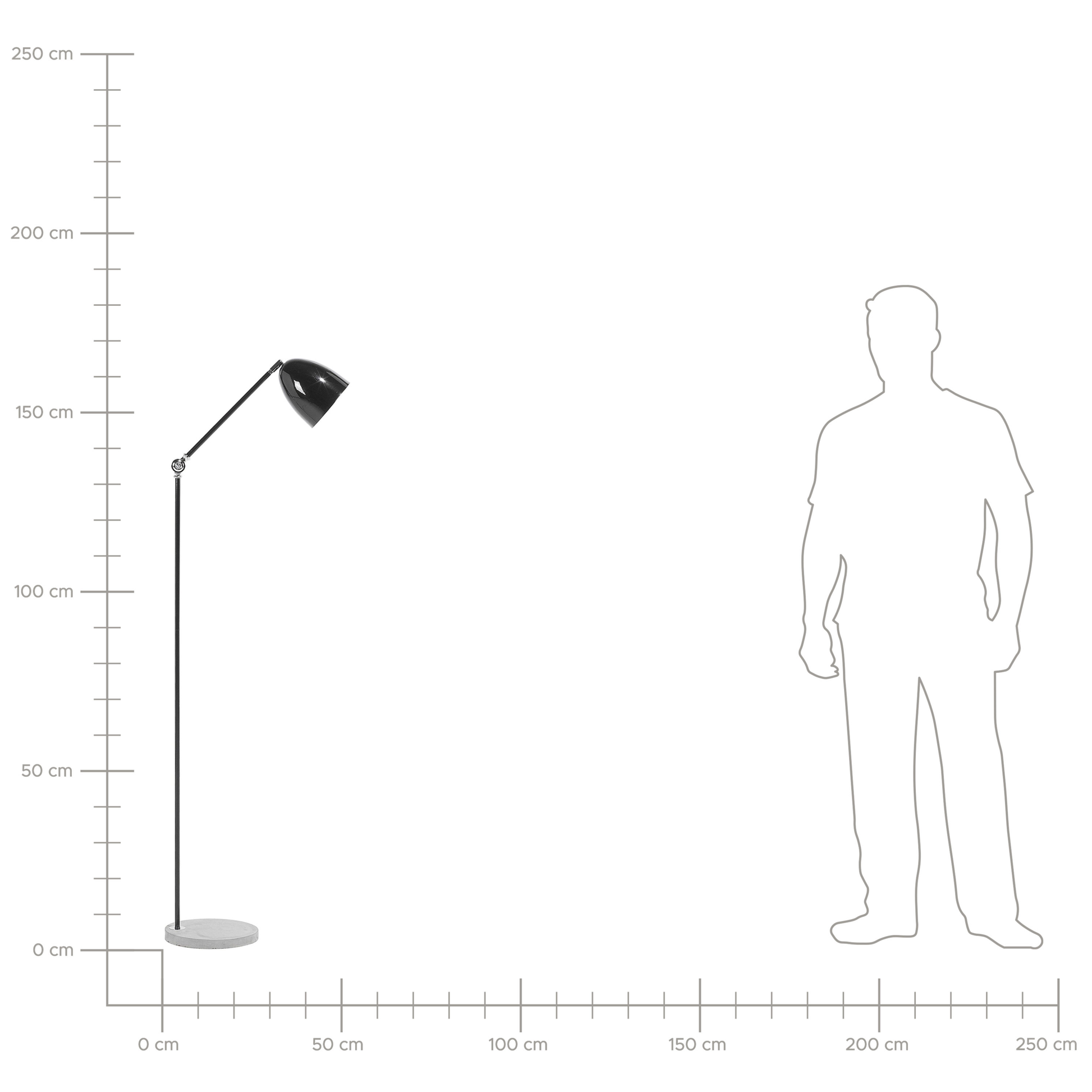 Typisch minimalistisch und modern präsentiert sich diese Stehlampe aus schwarzem Metall. Die dezente Form des schlanken Lampenarms, des runden, geschwungenen Lampenkopfes und des stabilen, runden Fusses aus hellgrauem Beton betonen ihre industrielle Ausstrahlung. Der praktische Leuchtenarm verfügt über ein silberfarbenes, flexibles Gelenk, mit dem die Lampe ganz nach Ihren Wünschen verstellt wird und zielgerichtet auf den zu beleuchtenden Bereich gestrahlt werden kann. Die Lampe ist mit einem schwarzen Kabel mit Schalter versehen.  Material: Metall. Zusätzliches Material: Beton.  Gewicht: 3 Montage: Teilweise montiert Das Angebot beinhaltet: 1 x Stehleuchte, Nicht im Lieferumfang enthalten: Leuchtmittel Höhe: 165 zusätzliche Information: Diese Leuchte ist geeignet für Leuchtmittel der Energieklassen A bis G auf einer Skala von A (sehr effizient) bis G (weniger effizient). Geeignet für: LED Leuchtmittel, Eco-Halogen Leuchtmittel, Energiesparleuchtmittel., Die Stromkabel dürfen nur von einem qualifizierten Elektriker angepasst werden. Breite: 15 Tiefe: 15 Art: Stehleuchte Stil: Modern Allgemeine Farbe: Schwarz Hauptmaterial: Metall Fassung: Max. 40 W IP Protection Code: IP 20