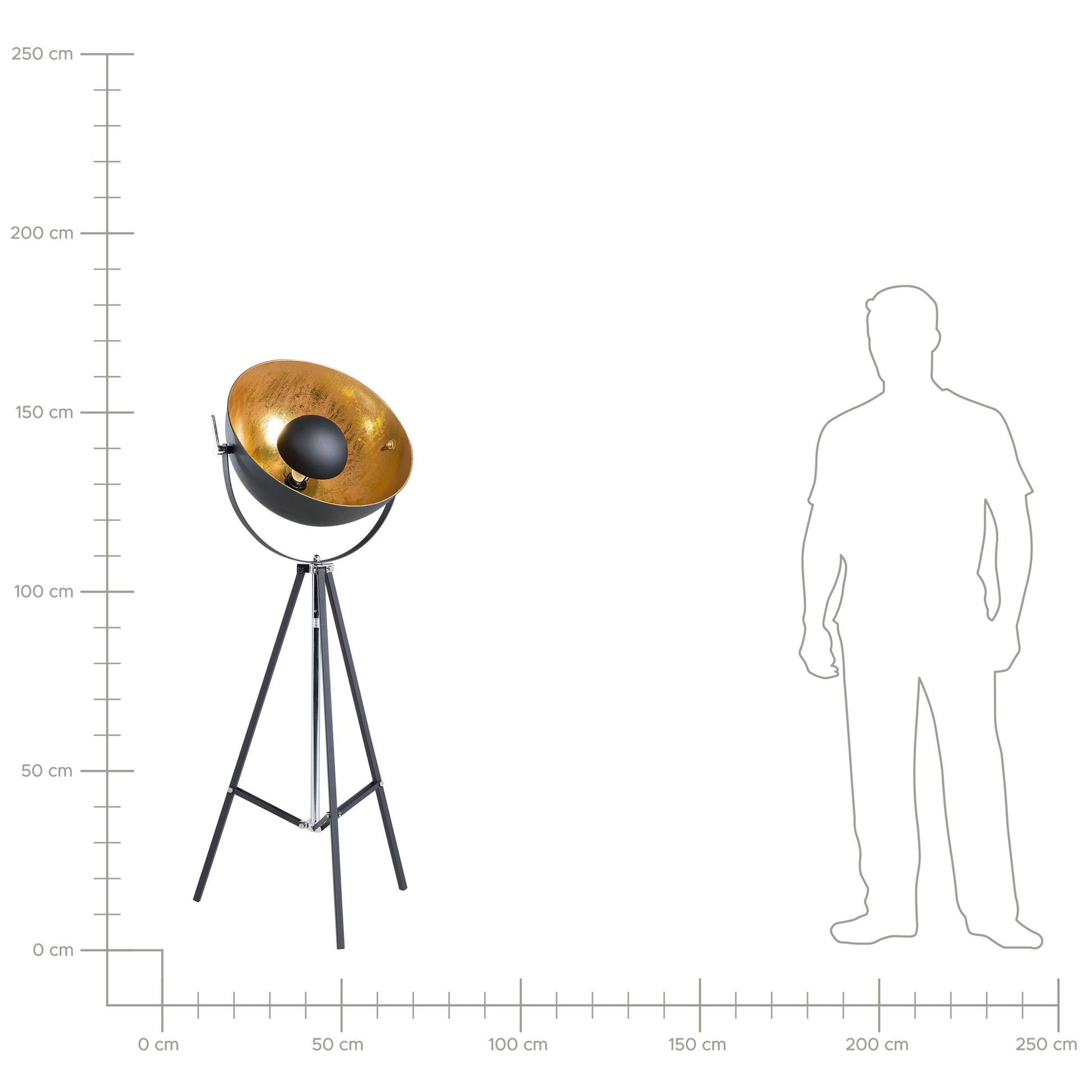 Diese Stehleuchte im topmodernen Design ist ein echter Hingucker in Ihrem Wohnzimmer, Schlafzimmer oder auch im Atelier. Der schwarze Lampenschirm (matt) ist höhenverstellbar und lässt sich zusätzlich vertikal ausrichten. Egal, ob Sie lediglich eine einfache Lampe benötigen oder etwas Bestimmtes (Bild, Pflanze, etc.) be- oder ausleuchten möchten. Mit dieser Stehlampe haben Sie genau die richtige Lichtquelle. Und dank des 3-beinigen Gestells steht sie zudem äusserst stabil auf dem Boden.  Material: Eisen. Gewicht: 5 Montage: Teilweise montiert Das Angebot beinhaltet: 1 x Stehleuchte, Nicht im Lieferumfang enthalten: Leuchtmittel Höhe: 165 zusätzliche Information: Diese Leuchte ist geeignet für Leuchtmittel der Energieklassen A bis G auf einer Skala von A (sehr effizient) bis G (weniger effizient). Geeignet für: LED Leuchtmittel, Eco-Halogen Leuchtmittel, Energiesparleuchtmittel., Die Stromkabel dürfen nur von einem qualifizierten Elektriker angepasst werden. Breite: 53 Tiefe: 53 Art: Stehlampe Stil: Industriell Allgemeine Farbe: Schwarz Hauptmaterial: Eisen Fassung: Max. 40 W IP Protection Code: IP 20
