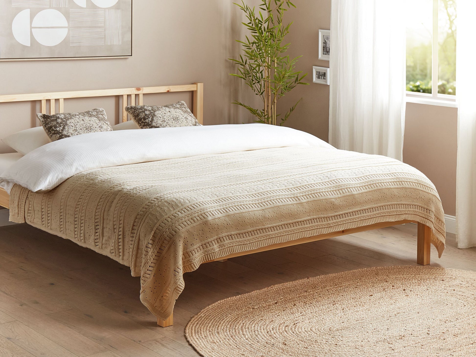 Verwandeln Sie Ihr Schlafzimmer in einen Ort der Eleganz und des Komforts mit dieser Tagesdecke im Boho-Stil. Dieses Wohnaccessoire ist aus strapazierfähiger und pflegeleichter Baumwolle gefertigt und garantiert somit Weichheit, Gemütlichkeit und Atmungsaktivität für eine ruhige Nachtruhe. Ideal für den ganzjährigen Gebrauch geeignet, ist sie die perfekte Ergänzung zu jedem Schlafzimmer. Material: Baumwolle. Material Zusammensetzung: 100% Baumwolle Montage: Benötigt keine Montage Das Angebot beinhaltet: 1 x Tagesdecke Höhe: 1 Breite: 150 Länge: 200 Art: Tagesdecke Allgemeine Farbe: Beige Muster: Geometrisches Muster Hauptmaterial: Baumwolle Dichte: 400