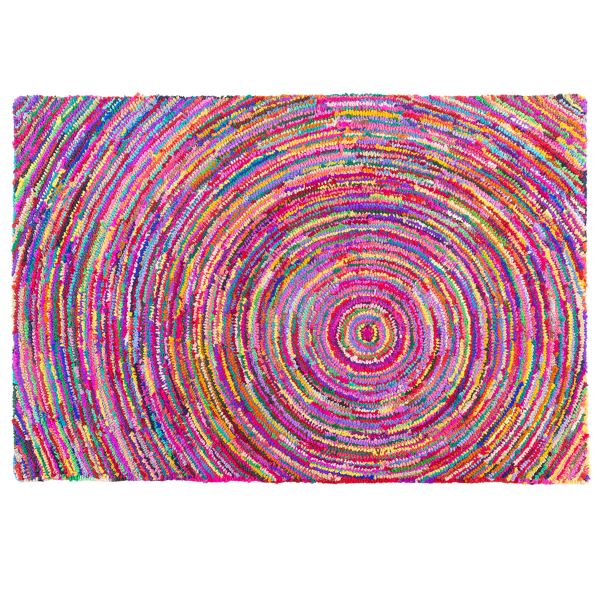 Beschreibung: Der Wohnzimmerteppich wird zum absoluten Hingucker durch sein Farbenspiel, denn der komplette Farbkreis ist auf diesem Läufer zu finden. Die einzelnen Farben fliessen ineinander hinein und geben dem Modell das gewisse Etwas. Die Kreise, die immer enger werden unterstützten den Farbverlauf optimal. Mit diesem ausgefallenen und auffälligen Hochflorteppich können Sie Ihrer Einrichtung mehr Farbe und Stil verleihen. Material: Polyester. Zusätzliches Material: Baumwolle. Gewicht: 13 Montage: Benötigt keine Montage Das Angebot beinhaltet: 1 x Teppich zusätzliche Information: Der Artikel könnte Haare verlieren. Dies ist ein normaler Vorgang und stellt keinen Qualitätsmangel des Produkts dar., Da der Teppich handgewebt ist, können kleine Farb-, Muster-, bzw. Grössendifferenzen auftreten. Diese Unterschiede stellen jedoch keinen Produktfehler dar. Gestalten: Rechteckig Breite: 140 Länge: 200 Art: Teppich Stil: Boho Allgemeine Farbe: Bunt Schatten: Marineblau Muster: Abstraktes Muster Hauptmaterial: Polyester Dichte: 4000