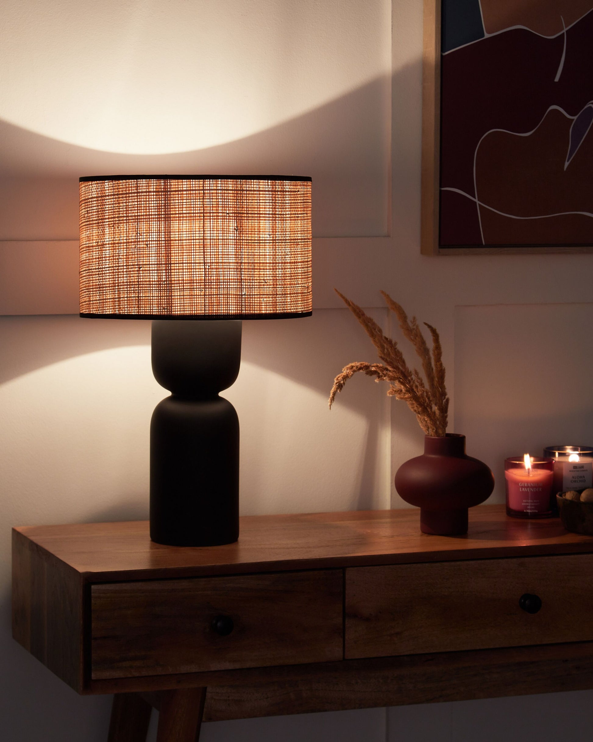 Tischleuchte aus Raffia Schwarz PRESIDIO