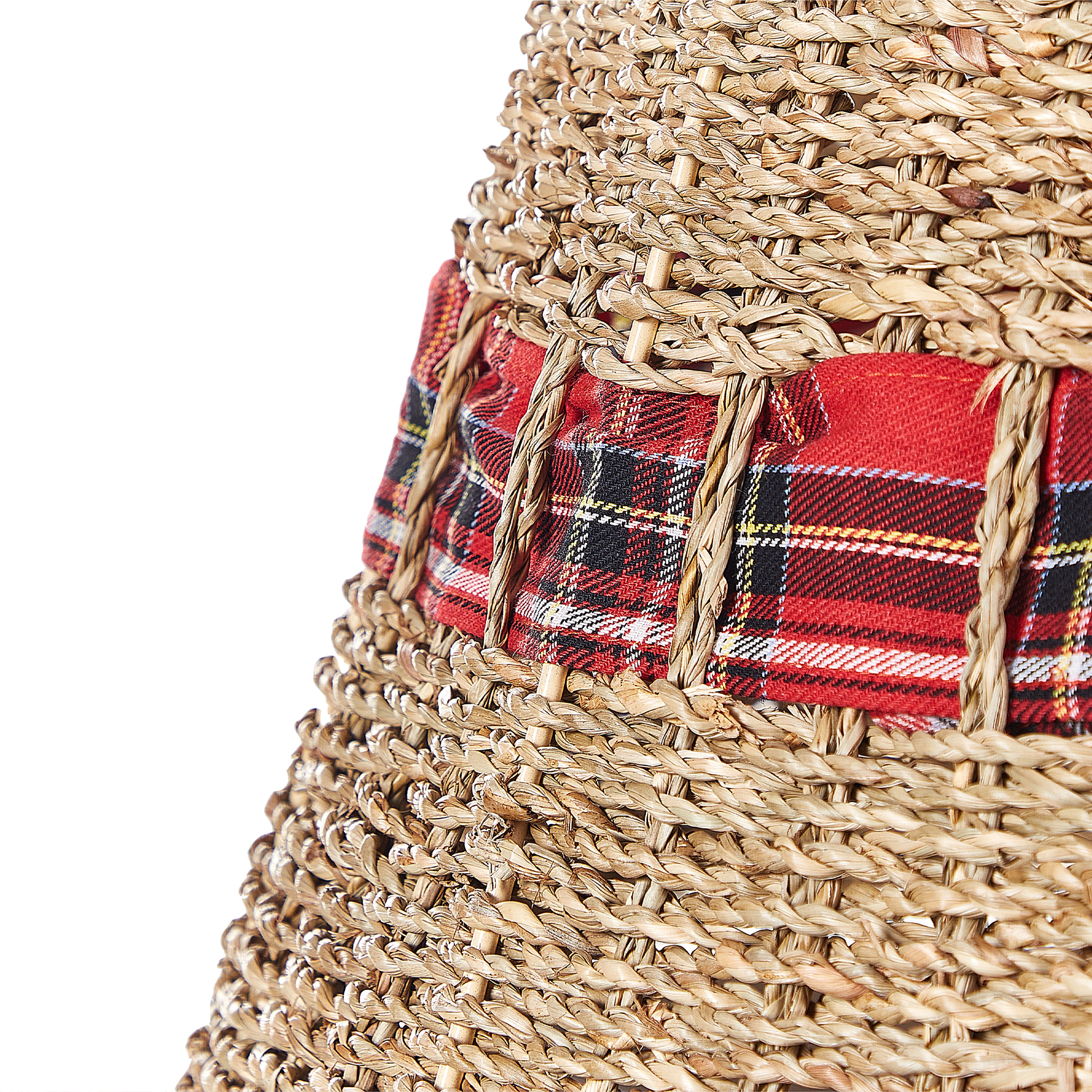 Mit diesem einzigartigen Baumkragen peppen Sie den Look Ihres Weihnachtsbaums auf und bringen einen Boho-Touch in den Raum. Er erlaubt Ihnen das Kabel der Lichterkette, den Christbaumständer oder -eimer gekonnt zu kaschieren und die Unterseite Ihres Baumes vor neugierigen Haustieren zu schützen. Der Christbaumrock besteht aus einem robusten Seegrasgeflecht, das mit Liebe zum Detail von Hand gefertigt ist. Er besticht dabei mit seinem natürlichen Farbton sowie einem roten Stoffband, das mit seinem Schottenkaro-Motiv eine weihnachtliche Stimmung aufkommen lässt. Dank der hochwertigen Materialien ist der Christbaumring sehr langlebig und erfordert wenig bis gar keine Pflege, sodass er Ihnen viele Weihnachten lang erhalten bleibt. Material: Seegras. Zusätzliches Material: Polyester. Material Zusammensetzung: 100% Polyester Gewicht: 1 Montage: Benötigt keine Montage Das Angebot beinhaltet: 1 x Weihnachtsbaumkragen Höhe: 27 zusätzliche Information: Da jedes Produkt handgefertigt wird, kann es zu kleineren Abweichungen in der Farbe und der äusseren Struktur kommen. Diese Abweichungen stellen keinen Qualitätsmangel dar, sondern sind eine warentypische Eigenschaft. Gestalten: Rund Breite: 45 Tiefe: 45 Art: Weihnachtsbaumkragen Stil: Boho Allgemeine Farbe: Naturfarben Hauptmaterial: Seegras