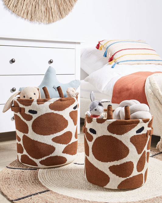 Textilkorb Baumwolle beige / braun Giraffenmotiv 2er Set POMANG