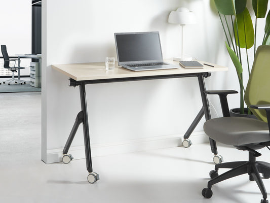 Schreibtisch heller Holzfarbton / schwarz 120 x 60 cm klappbar mit Rollen BENDI