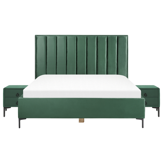 Schlafzimmer Set Samtstoff SEZANNE 180 x 200 cm Dunkelgrün