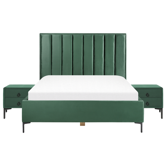 Schlafzimmer Set Samtstoff SEZANNE 160 x 200 cm Dunkelgrün
