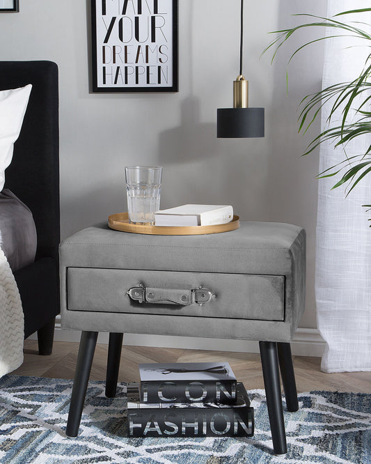 Nachttisch mit 1 Schublade EUROSTAR Samtstoff Grau