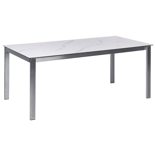 Gartentisch COSOLETO 180 cm 90 cm Marmor Optik Glas Weiss