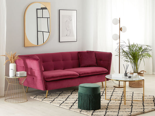 3-Sitzer Sofa Samtstoff dunkelrot mit goldenen Beinen FREDERICA