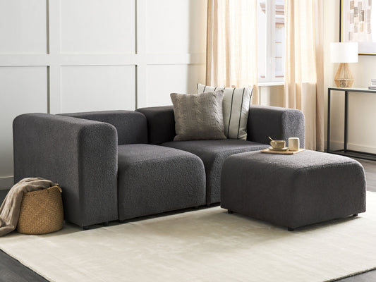 2-Sitzer Sofa Bouclé dunkelgrau mit Ottomane FALSTERBO