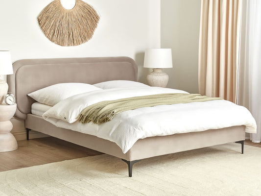 Bett mit Lattenrost Samtstoff LUNAN 140 x 200 cm Hellbeige