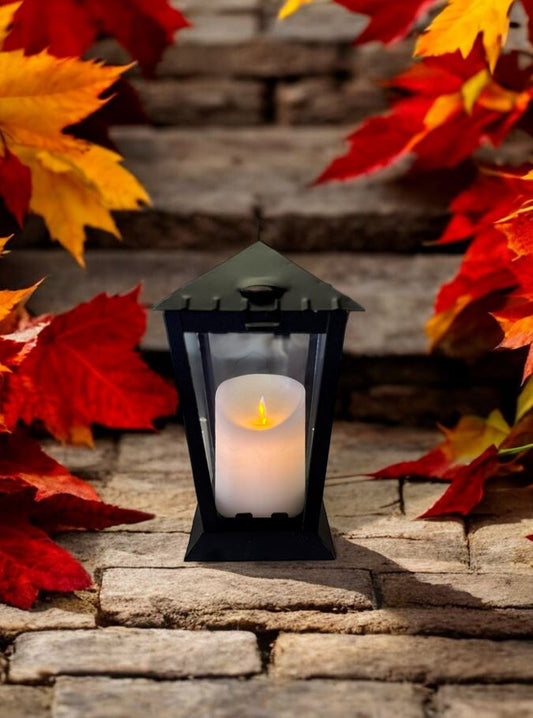 LED Windlicht mit Henkel Schnee Design mit Microlight 6LED warm weisses Licht