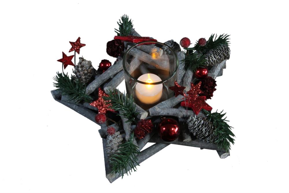 Adventsgesteck aus Holz Sternenform D:25cm