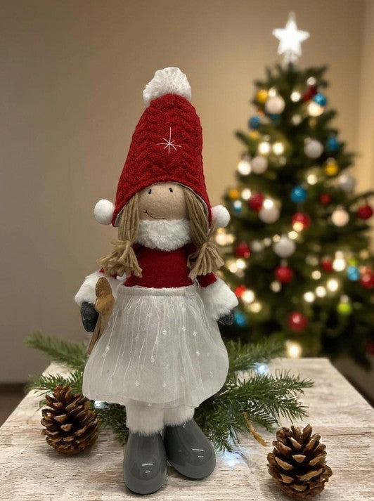 Deko Figur Mädchen stehend mit Ski in der Hand H49cm