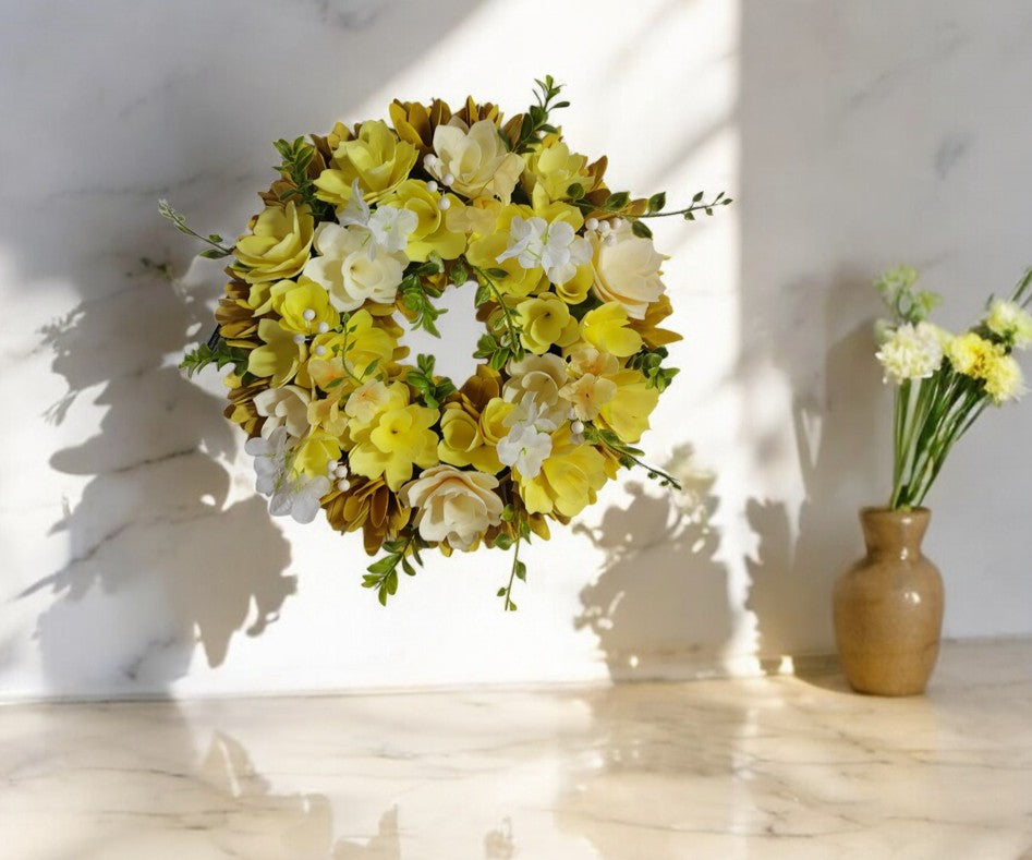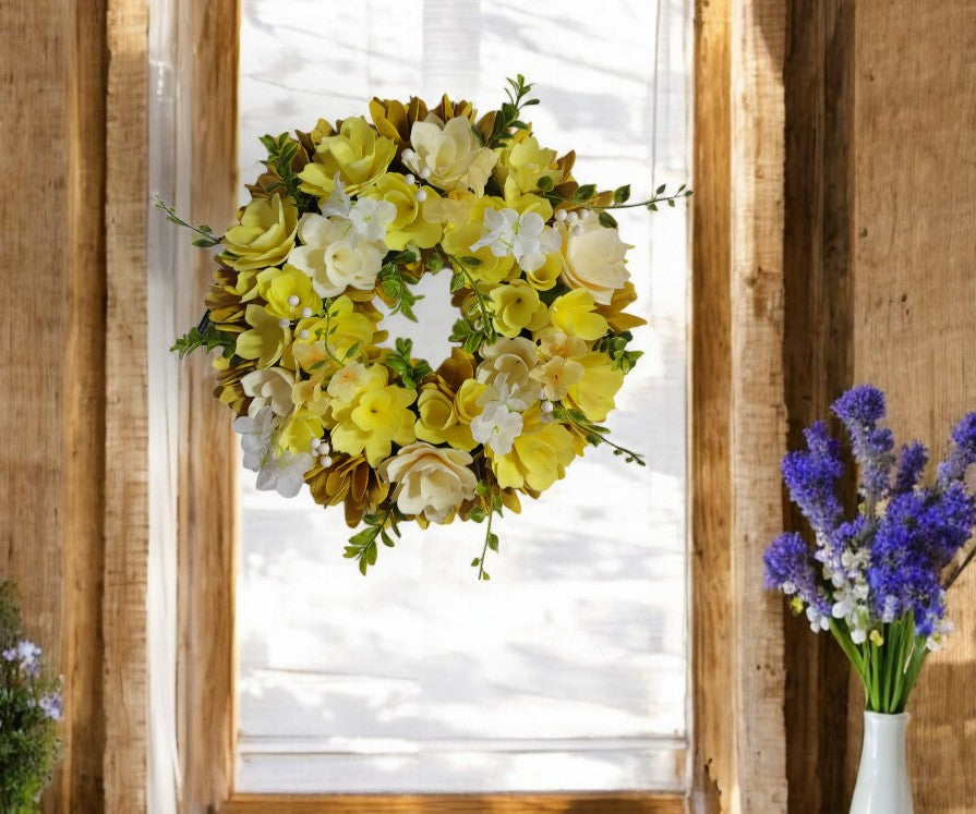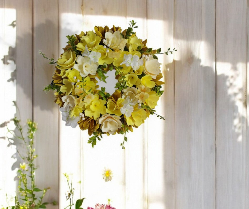 zum Legen oder Hängen gelbe und weisse Blüten Materialien: Baumrinde (Pappel), Kunststoff FSC MIX TUVDC-COC-101013