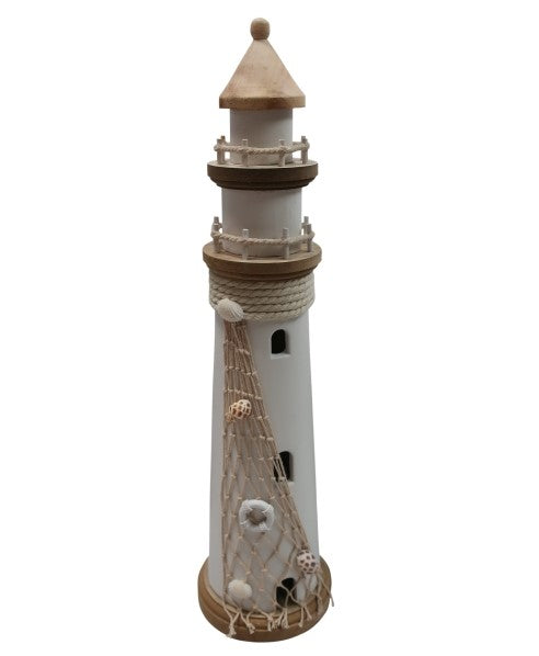 Deko Leuchtturm aus Holz H:48cm Farbe Weiss D:12cm cm H:48cm