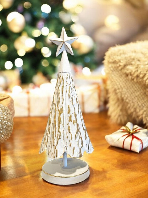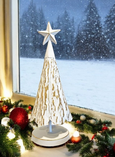 Deko Tanne aus Metall altweiss gold mit Stern auf der Spitze