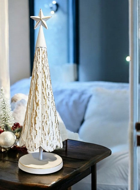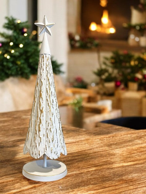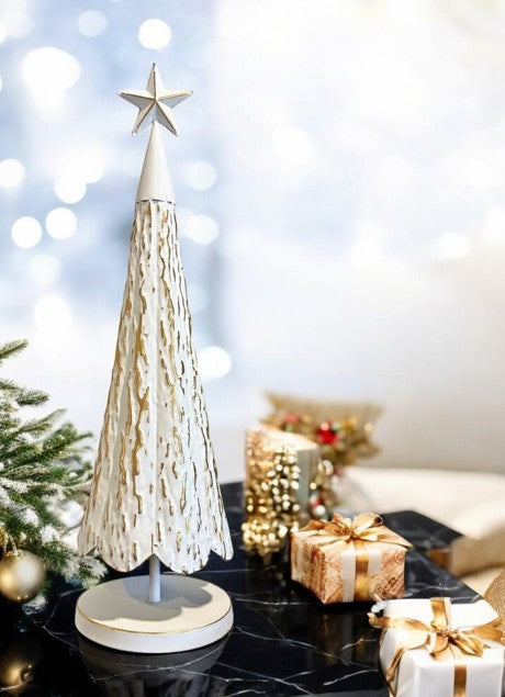 Deko Tanne aus Metall altweiss gold mit Stern auf der Spitze