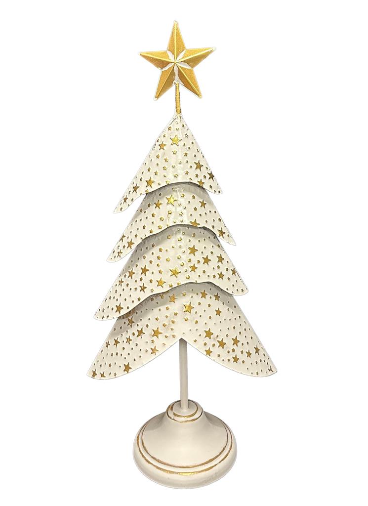 Deko Weihnachtsbaum aus Metall altweiss gold H58.5cm
