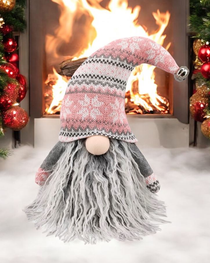 Deko Wichtel Santa Mütze mit Glöckchen Farbe: Rosa/Grau L:12cm B:17cm H:26cm