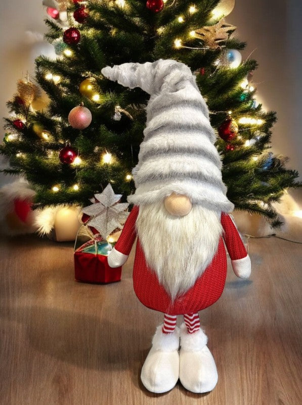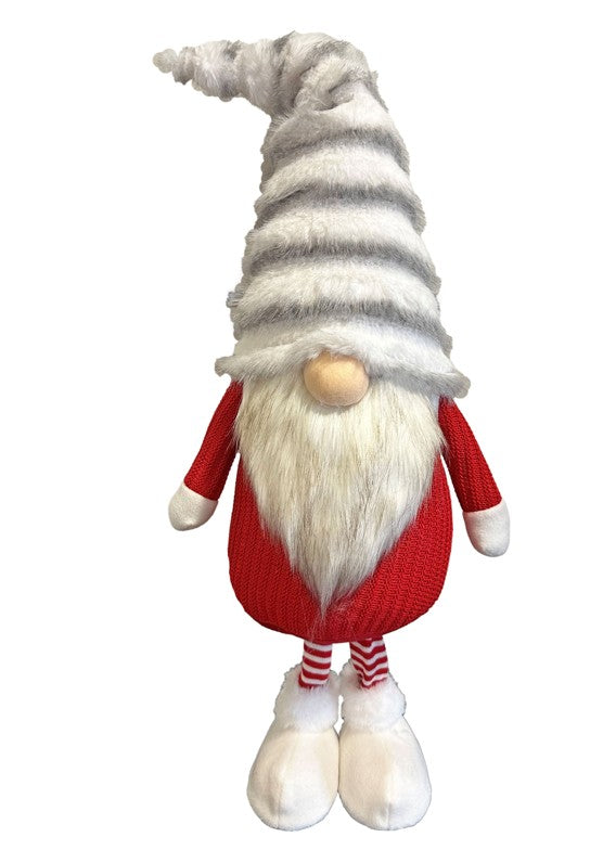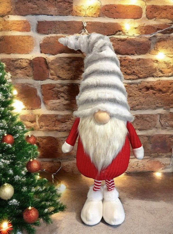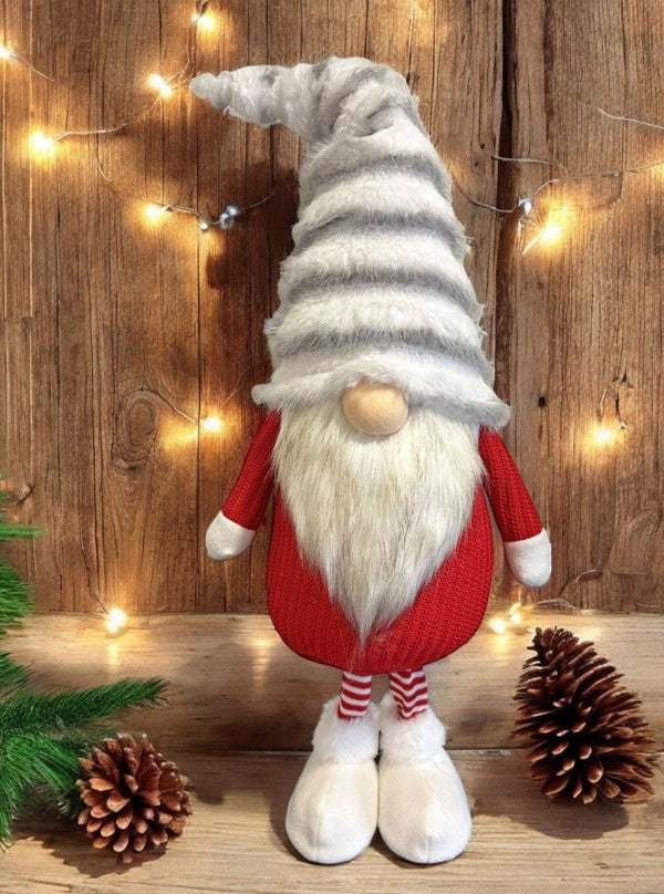 Deko Wichtel stehend rot weiss mit flauschiger Mütze grau weiss
