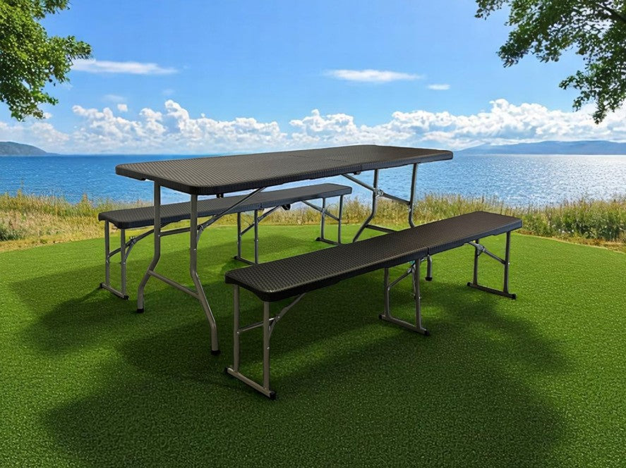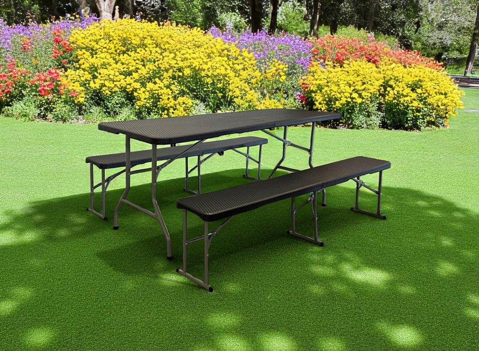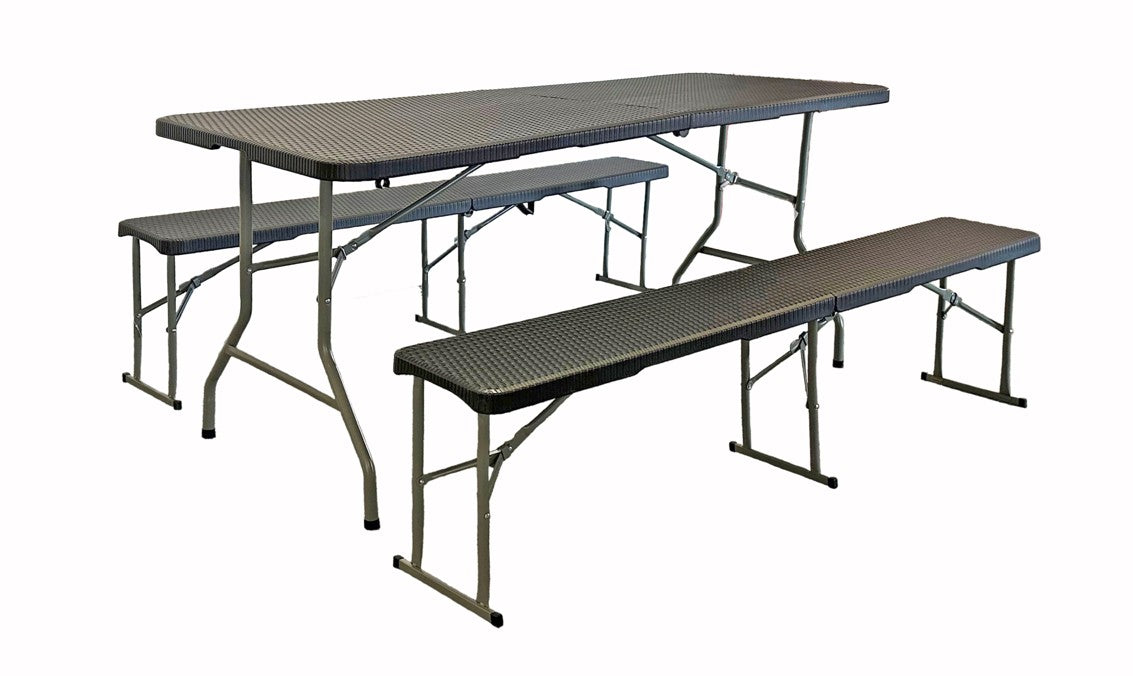 Festbank Garnitur klappbar Kunststoff Rattan Optik in der Farbe anthrazit