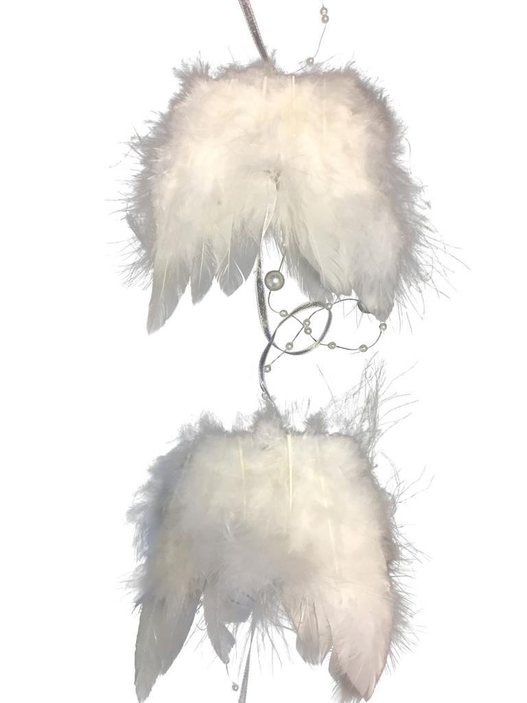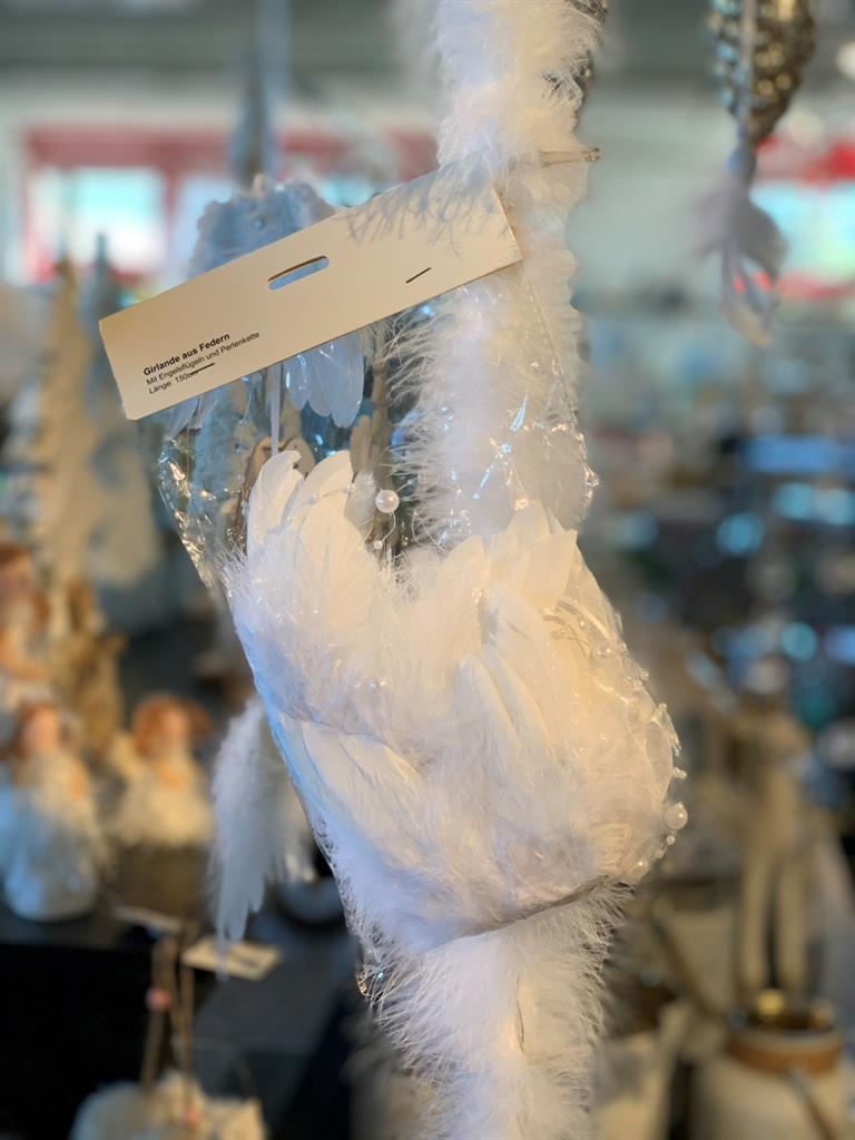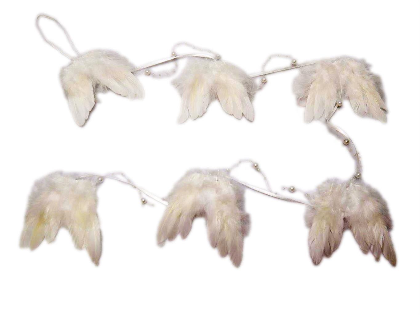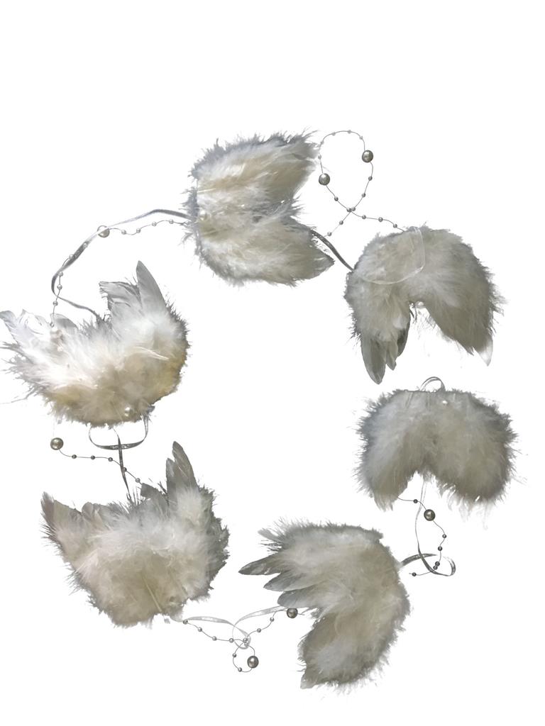 Girlande aus Federn mit 6 Engelsflügeln und Perlenkette, Länge 150cm