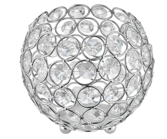Kerzenhalter mit Strasssteinen und verchromtem Metallrahmen D12cm H10.5cm