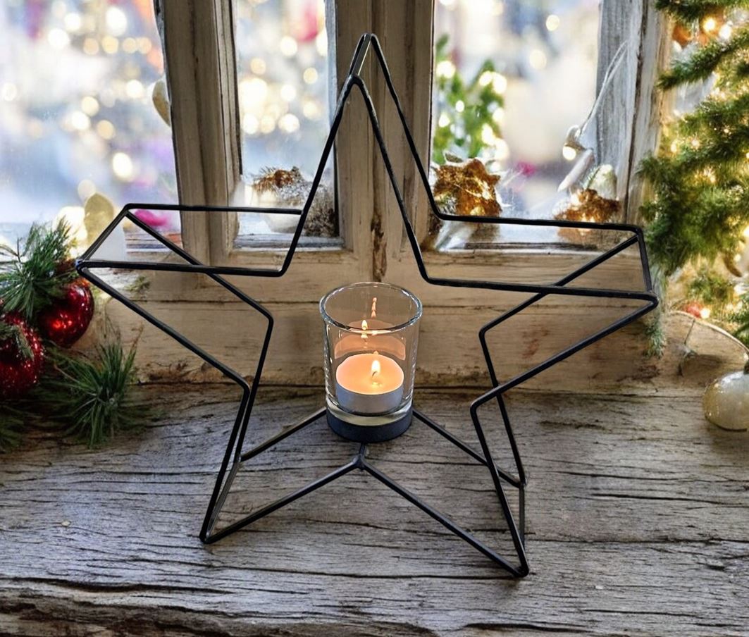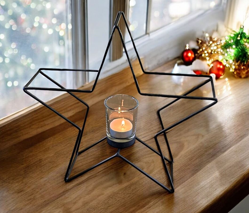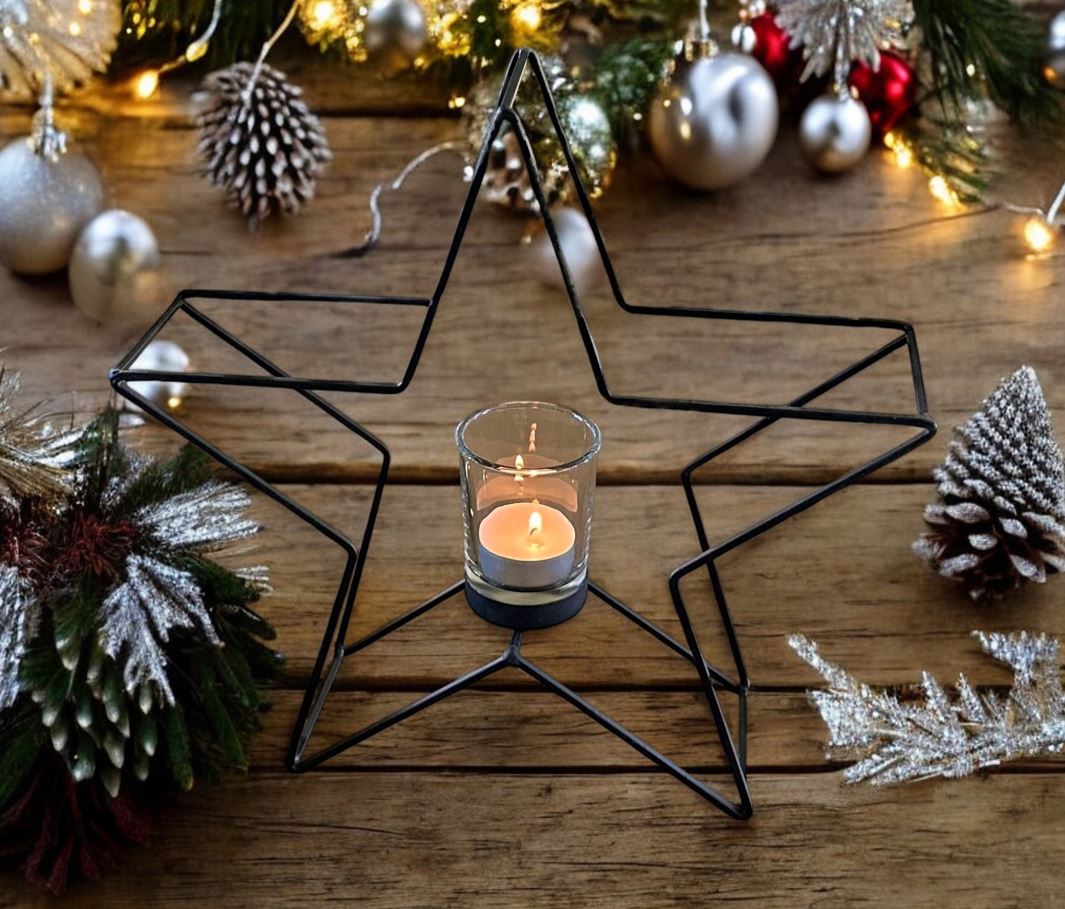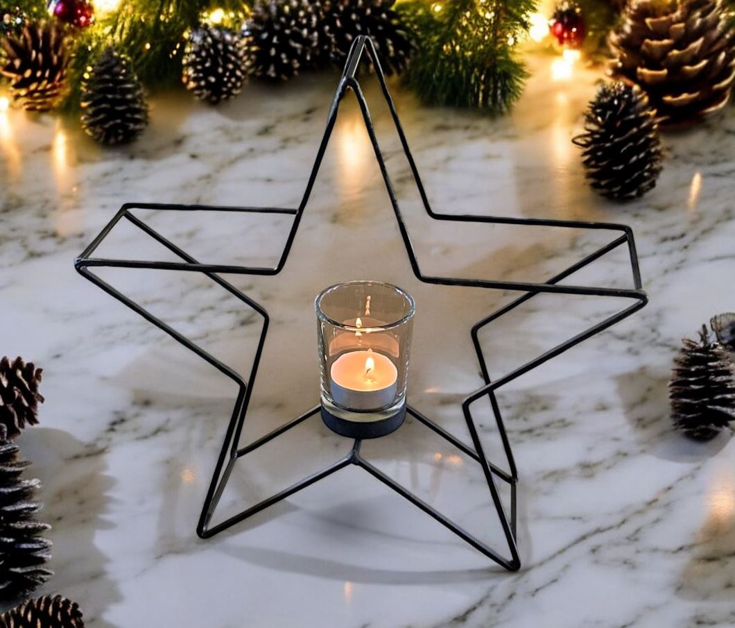 Kerzenhalter Stern in Schwarz aus Metall H: 28cm B: 29cm T: 8cm