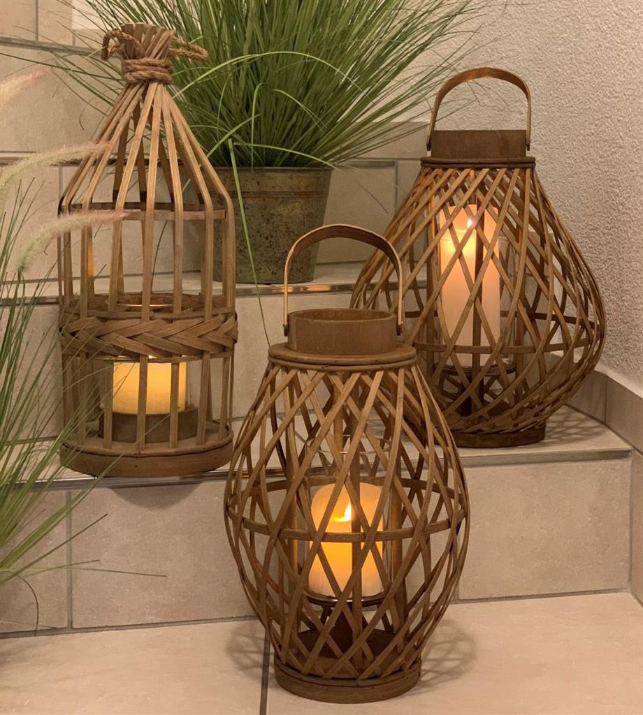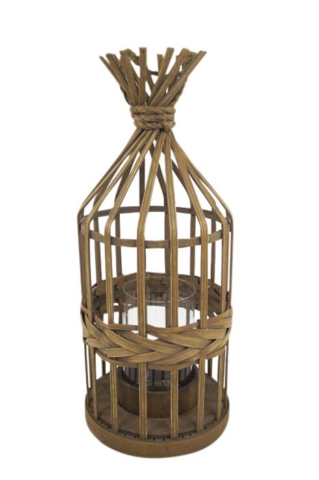 Laterne aus Bambus mit Glaseinsatz und Kordel