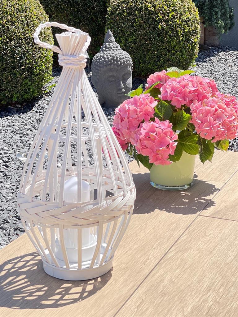 Laterne aus Bambus mit Glaseinsatz und Kordel