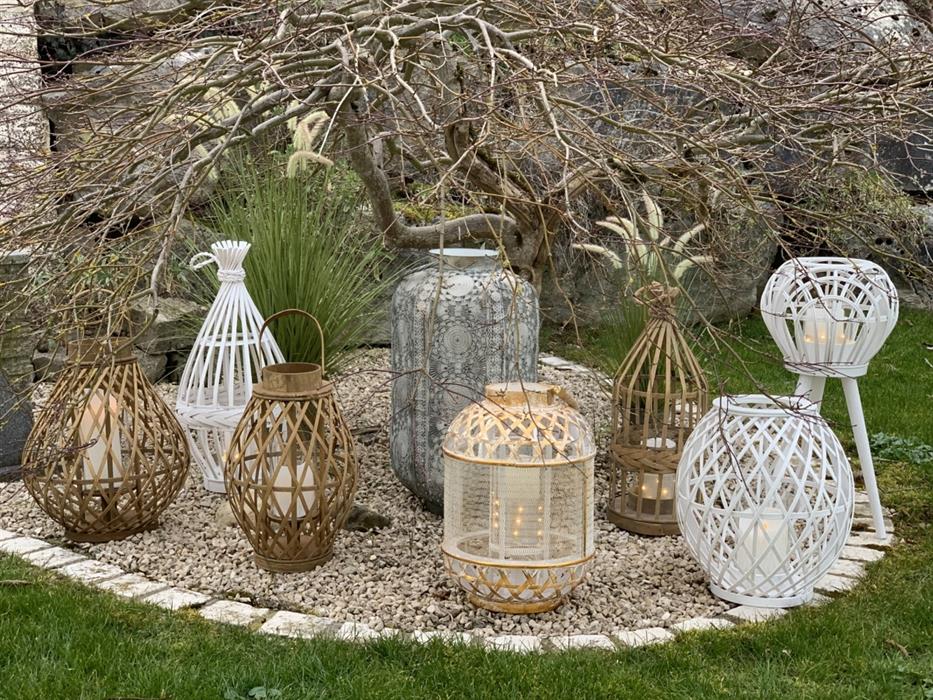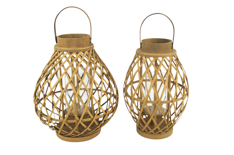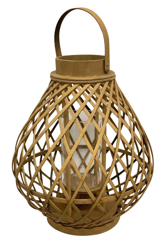 Laterne aus Bambus rund mit Griff und Glaseinsatz