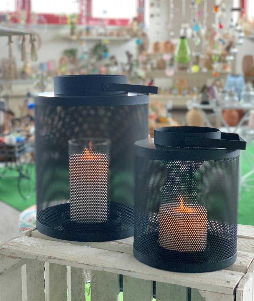 Laterne aus Metall H:28cm mit Henkel und Glaseinsatz Farbe: Schwarz D:20cm H:28cm