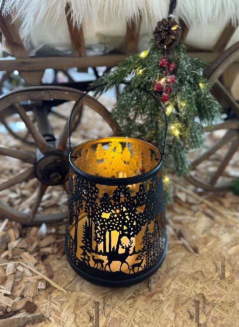 gestanztes Scherenschnittmuster mit Hirschen und Bäumen für Teelichter, Kerzen oder Lichterketten geeignet