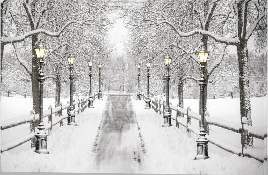 LED Bild aus Canvas mit 8 LED Motiv: Verschneite Allee B:40cm H:30cm T:1.8cm