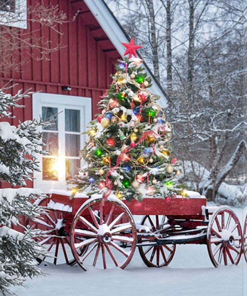 LED Bild aus Canvas Motive: Roter Wagen 1 LED und 20 Fibre Optic L:40cm B:1.8cm H:50cm