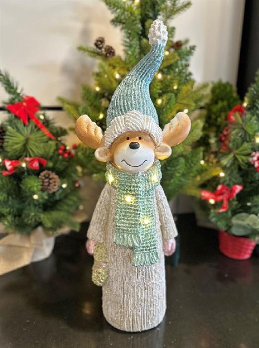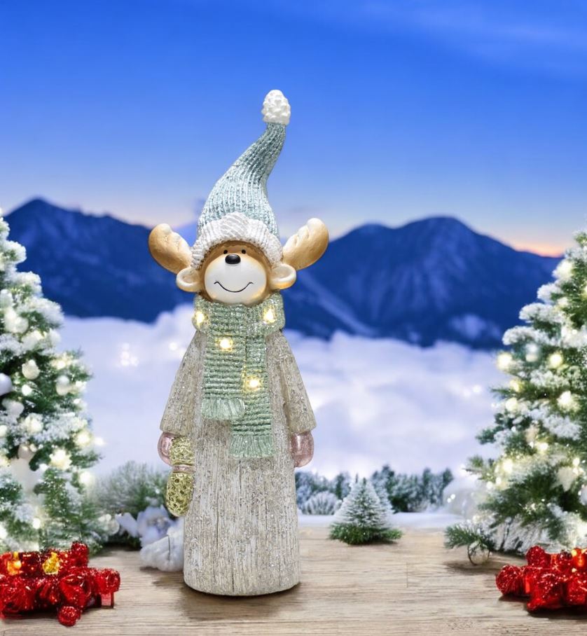 LED Deko Figur Elch mit Tannenkranz in der Hand mit 4 LED