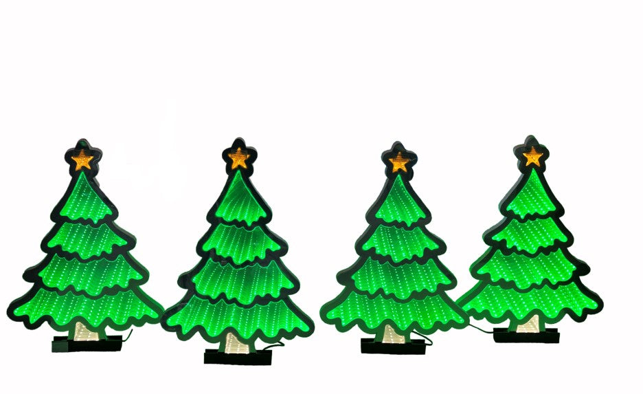 LED Figur Tannenbäume mit Infinity Effekt, 4er Set verbunden. Zum Einstecken