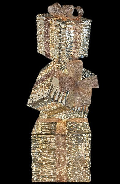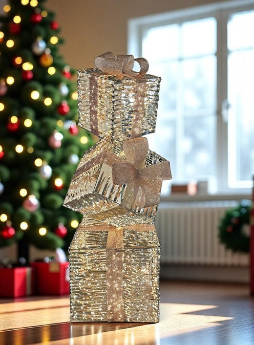 LED Geschenkbox gold Outdoor aus Metall mit 2080LED Micro Light goldige PET Streifen