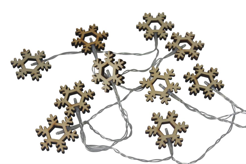 LED Lichterkette mit 10 LED Holz Schneeflocken L:135cm warm weisses Licht