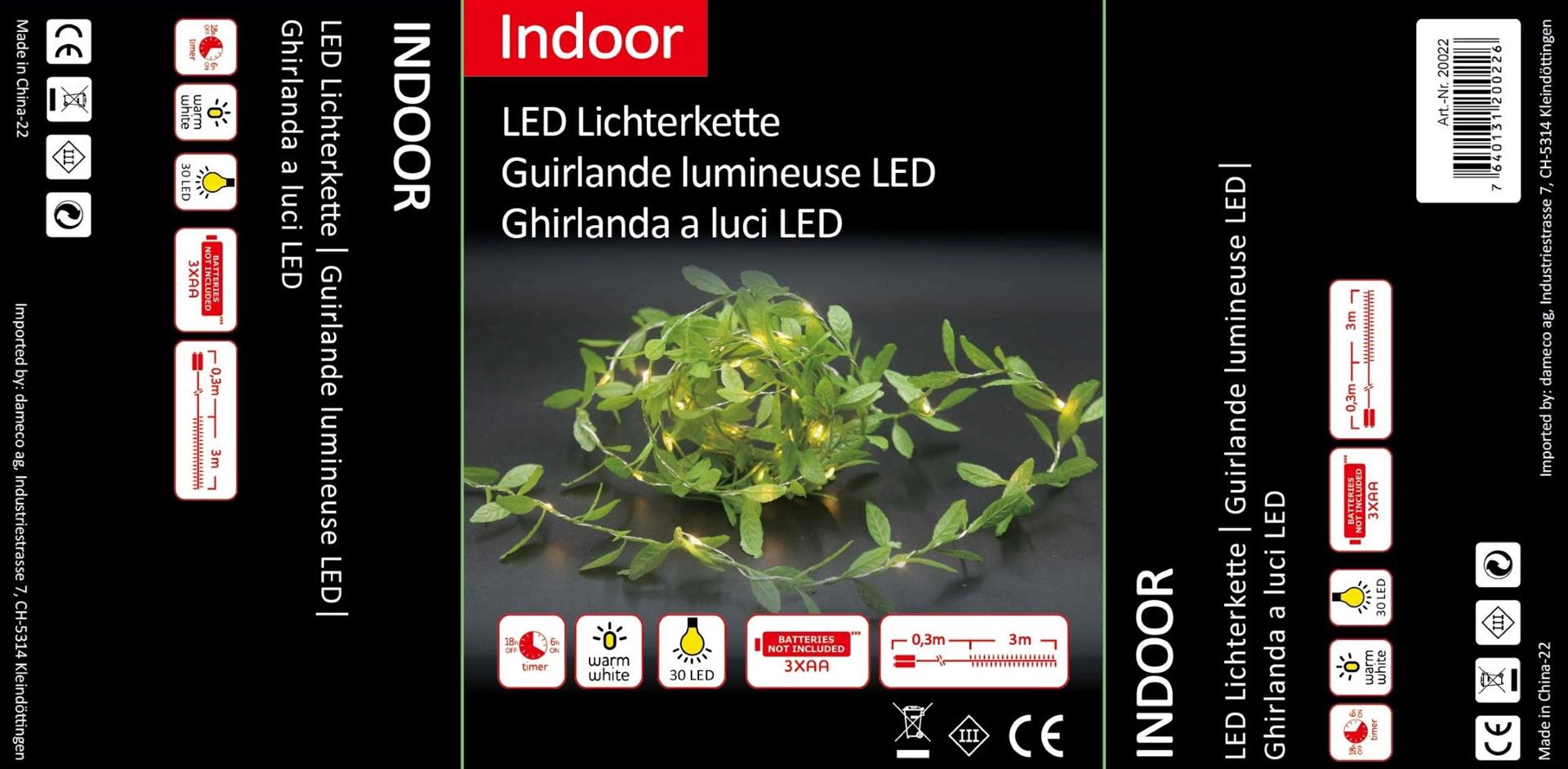 LED Lichterkette mit künstlichen Weidenblättern L:300cm - 30 LEDs