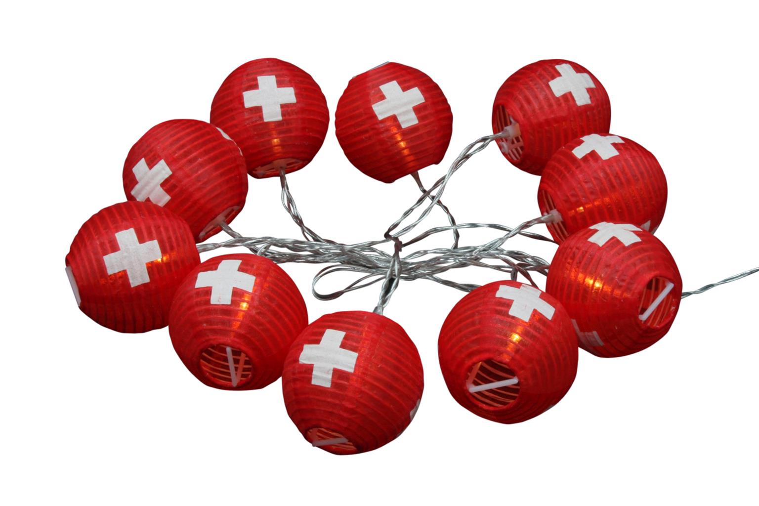 LED Solar Lampion Kette mit 10 LED Schweiz L: 180cm + Anschlusskabel 100cm, Outdoor