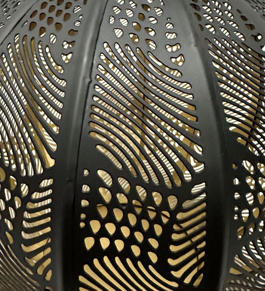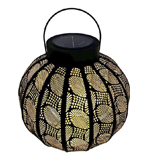 zum Hängen oder Stellen gestanztes Muster Innnen gold Aussen schwarz Batterie: 1x1.2V AA NI-MH 600mAh herausnehmbares Solar Panel: Polycrystal silicon 90x90mm mit 1 warm weissen LED Einzelkarton mit Colorlabel inklusive VRB / CHF 00.25