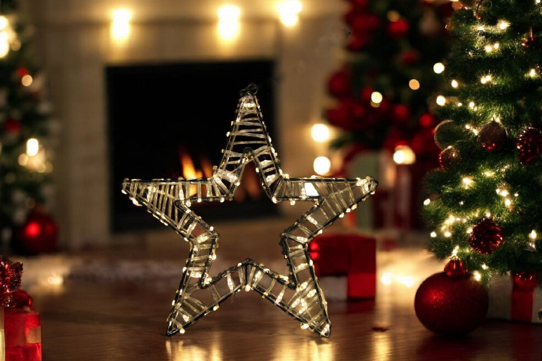LED Stern Outdoor Metall mit 100 LED Farbe: Silber D: 30cm - T:5cm