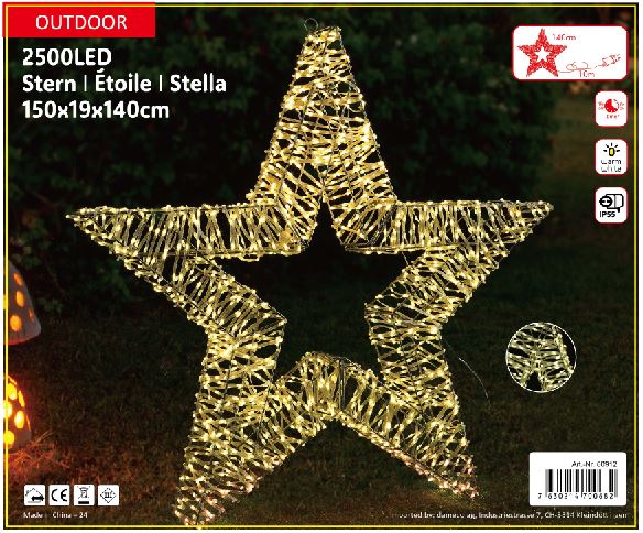 LED Stern Outdoor Metall mit 2500 LED Farbe: Silber D: 150cm - T:19cm