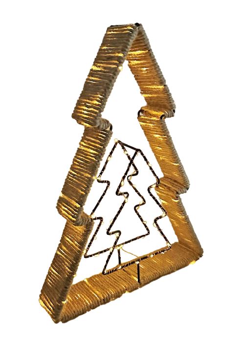 LED Tannenbaum aus Metall umringt mit Seil Schnur in der Mitte kleiner Stern schwarz