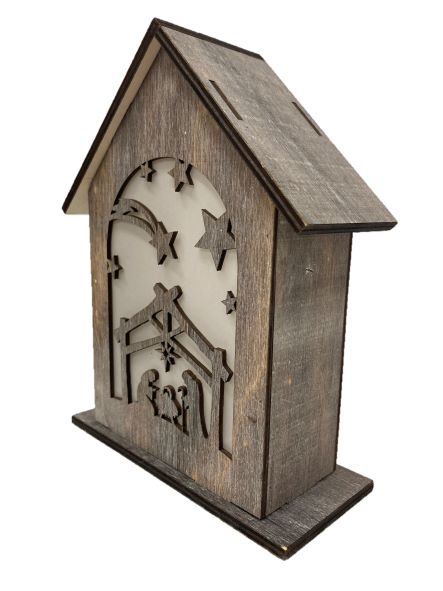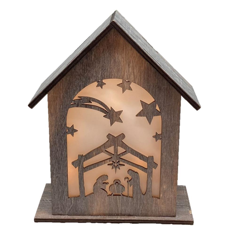 LED XMAS Haus mit Krippenszene mit Hologrammfolie und 10 LED Farbe: Braun