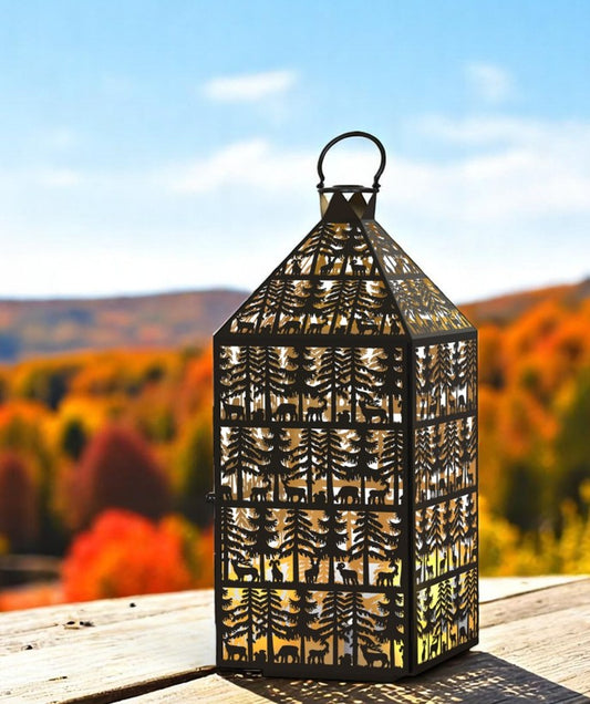 AusverkauftLaterne Forest aus Metall eckig schwarz gold