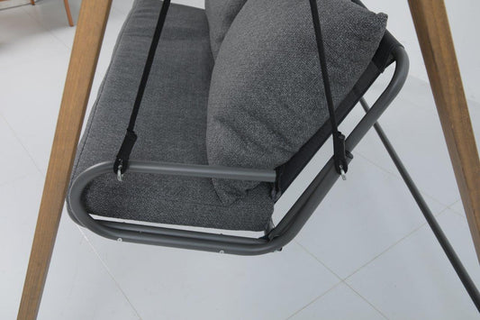Hollywood Garten Schaukel mit Stahlrahmen in Holzfinish Kissen und Top in Dunkelgrau